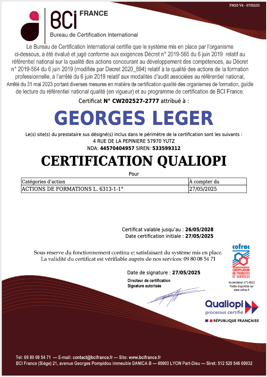 2. QUALIOPI : Cette certification est la preuve de mon engagement vers une amélioration continue de la qualité de mes actions de formation. Je suis en mesure d'appliquer les critères de QUALIOPI pour garantir une expérience d’apprentissage optimale, ce qui renforce ma légitimité auprès des apprenants et des entreprises.