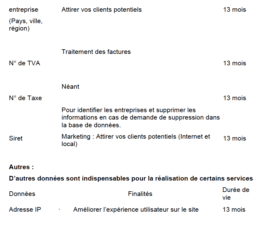 Registre des consentements et de traitement des activités LEGER Georges enregistre et suit tout consentement donné par vous sur notre site internet en fonction du service auquel vous souscrivez dans le but de vous inscrire, créer un compte, nous contacter ou vous joindre, ou envoyer un code promotionnel, etc. Nous conservons un registre de consentement pour les utilisateurs qui achètent nos services et acceptent notre politique de confidentialité. LEGER Georges tiens un registre des activités de traitement ayant droit au
